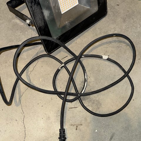 Biltema 46-3174 LED arbeidslampe med effekt på 50 W og fargetemperatur 4000 K. Lampen drives på 220–240 V, 50/60 Hz, og har kapslingsgrad IP44. Den er montert på stativ med justerbare føtter og tilkoblingskabel. Egnet som arbeidslys i garasje, verksted eller på byggeplass der det er behov for jevn og bred belysning.