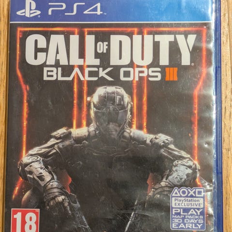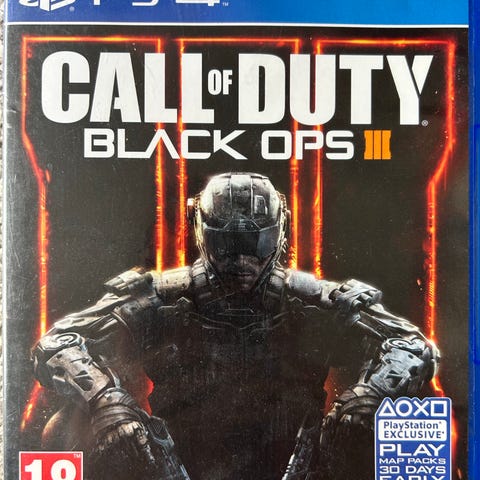 Call of Duty Black Ops III PlayStation 4 spill. Action- og skytespill for PS4 med aldersgrense 18 år. Leveres i originalt PS4-cover. Egnet for én spiller og flerspiller, både lokalt og online, avhengig av konsollens funksjoner og eventuelle abonnementstjenester.