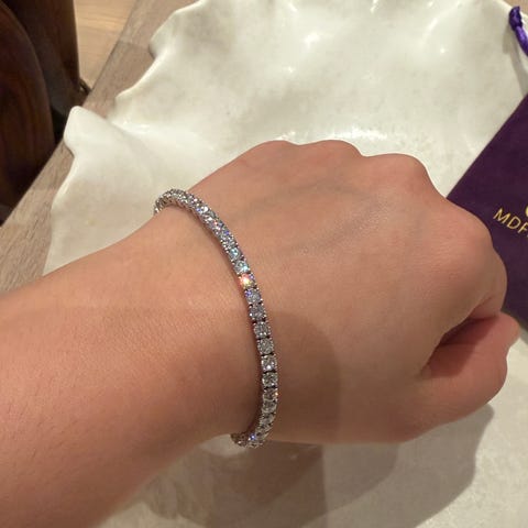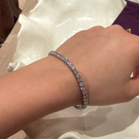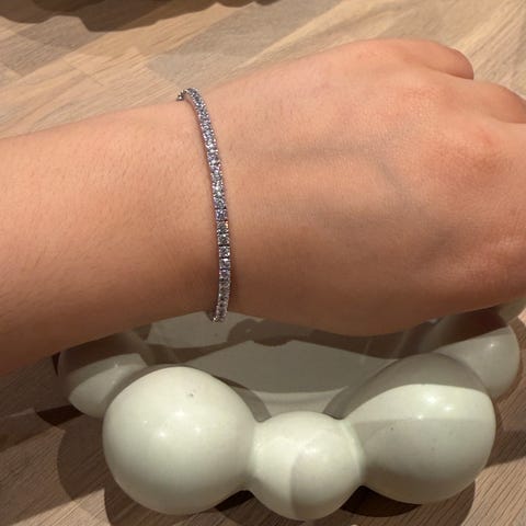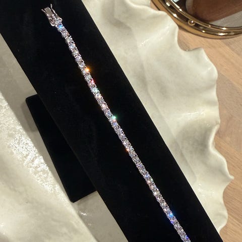 Selger et helt nytt sett tennisarmbånd og øredobber med vakre moissanite-steiner og 18 karat gullbelegg. Armbåndet glitrer utrolig fint i både dagslys og innelys, og gir et eksklusivt uttrykk.