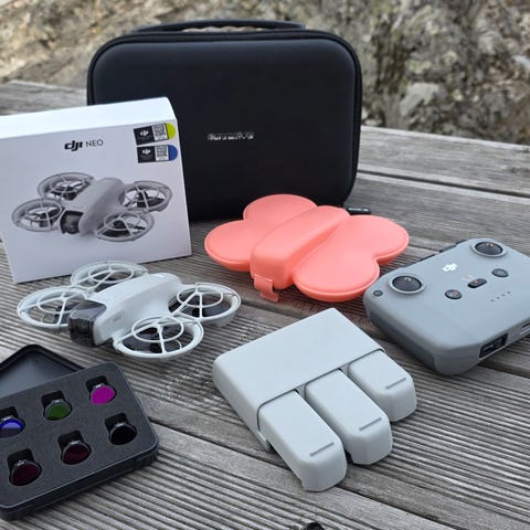 DJI Neo 2 drone. Dronen er i perfekt stand, og har flydd mindre enn tre timer. Jeg har vært kjempefornøyd med dronen.
