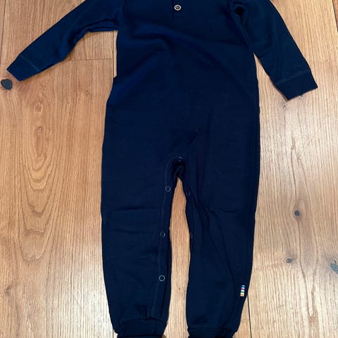WoolLand ulldress til barn i blå merinoull, unisex og i one size. Heldressen har lange ermer og lange ben, og er laget i myk merinoull som egner seg godt som innerste lag eller som pysjamas. Passer til både jenter og gutter, og kan brukes gjennom store deler av året på grunn av ullens temperaturregulerende egenskaper.