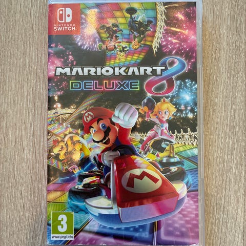 Spillet er i fysisk utgave (spillkassett med eske). Mario Kart 8 Deluxe er et racingspill der man kan kjøre ulike baner med figurer fra Mario-universet. Utgaven støtter flerspiller, både lokalt og online, og har PEGI 3-aldersmerking.