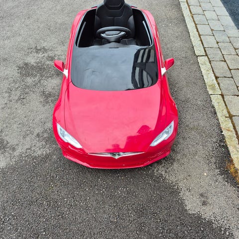 Tesla elektrisk lekebil rød selges