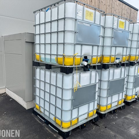 2 stk IBC tanker i solid bur og plastbeholder. Egnet for lagring og transport av væsker. Enkel håndtering med truck eller jekketralle. Utstyrt med tappeventil i bunn. Tydelige målemarkeringer på beholder.