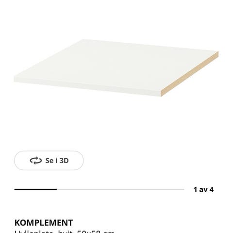 Komplement Hylleplate hvit 50x58 cm IKEA 2 stykk