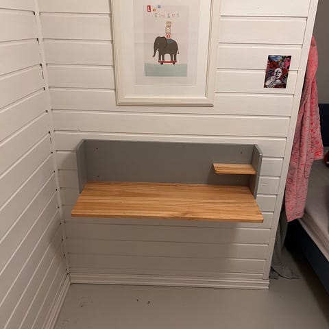 Plassbesparende vegghylle med sammenleggbart bord: Optimaliserer plassutnyttelsen.