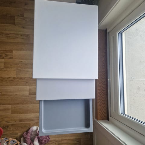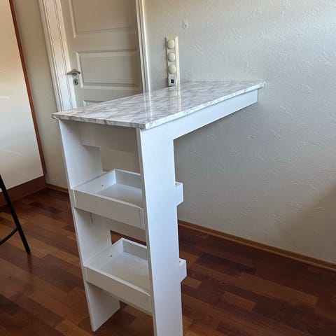 Lastekapasitet: 30 kg (totalt), 20 kg (bordplate), 5 kg (hver hylle)