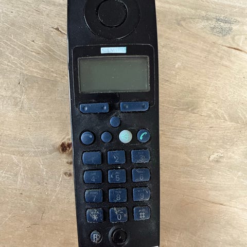 Nesten ubrukt trådløs telefon fra tyske Siemens. Med store og tydelige knapper.