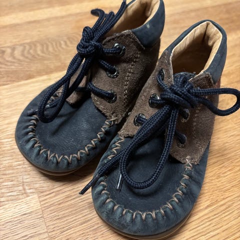 Bisgaard barnesko i størrelse 23 for unisex. Skoene er laget i blått skinn med snøring foran og kontrastsøm rundt tåpartiet. Yttersålen er i gummi med struktur for bedre grep. Innvendig fôr er i mykt materiale for økt komfort. Egnet som hverdagssko for barn som trenger stabile og myke sko til lek og bruk inne eller ute.