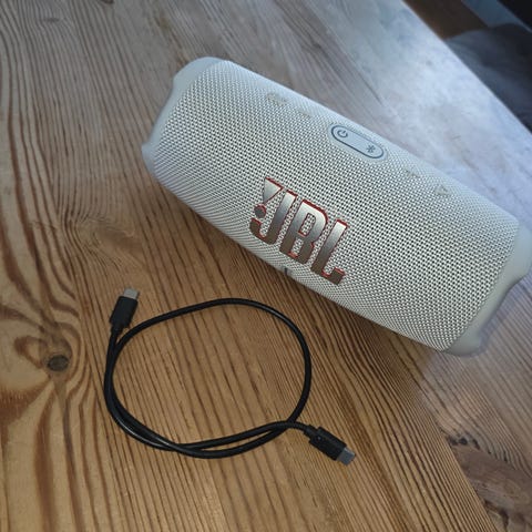 Innebygd powerbank: Du kan lade telefonen din via USB-porten på høyttaleren.