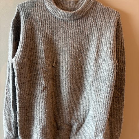 Vailent ullgenser for herre i størrelse S. Genseren er beige og strikket i en grov ribbestrikk. Materialet består av 80 % lammeull og 20 % nylon. Rund hals og lange ermer med forsterkede albuelapper i kontrastfarge. Genseren har en liten lomme foran nederst. Passer til hverdagsbruk og som mellomlag i kjøligere vær.