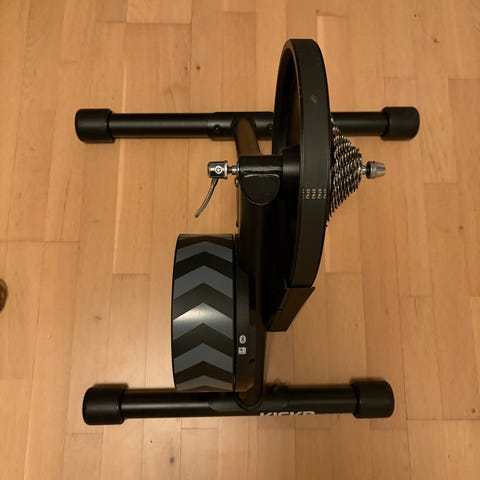 Wahoo Kickr Snap smart sykkelrulle med bluetooth koblkng for smart styring av motstand og registrering av watt. Det følger med rulledekk for montering på bakhjulet på sykkelen.
