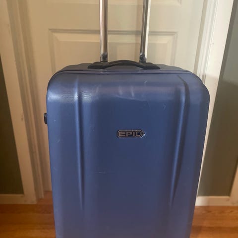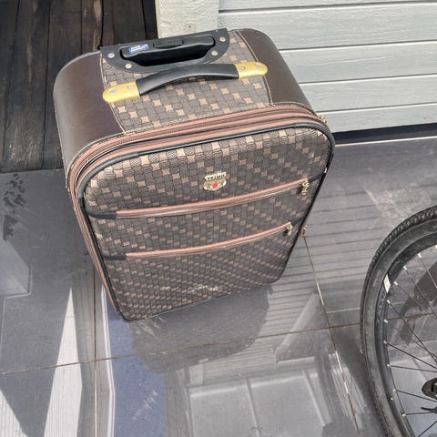 Gir bort sort koffert i stoff størrelse håndbagasje. Og blå større i hard plast. Begge i grei stand