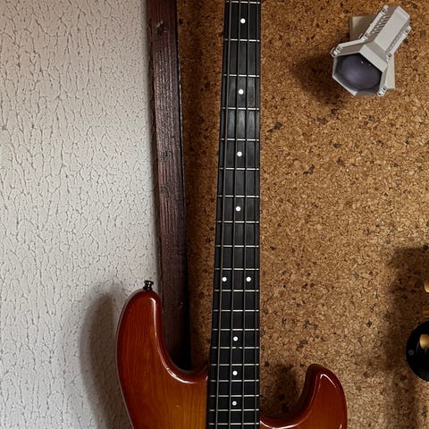 Flott Fender Squier med forsterker og polstret gitartrekk selges da denne ikke blir brukt og kun har hengt til pynt de siste 8 år