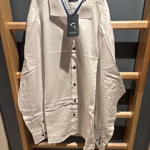 Giovani skjorte for herre i størrelse 4XL. Skjorten er hvit og laget i lin, med en lett og luftig kvalitet. Passformen er merket som Tailored Fit på merkelappen. Egnet som pen- eller fritidsskjorte i varme temperaturer eller når man ønsker et plagg i naturmateriale.