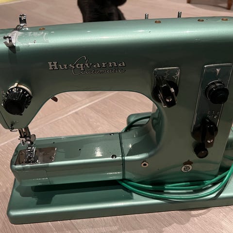Denne symaskinen er i meget god stand og alt virker, den syr veldig fint og går utrolig jevnt. Den har sikk sakk søm og rett søm.