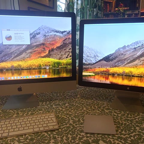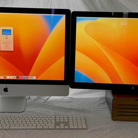 Fin pakke for deg som ønsker en klassisk Apple-arbeidsplass med to store skjermer, til kontorbruk, media, musikk, foto, hobbybruk eller eldre Mac-programvare.