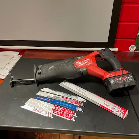 Bajonettsag Kjøpte i 2024. Den ble brukt under bygging av søppelhus og sto i over 1 år ubrukt. Selger pga. Jeg har ikke behov for verktøy som jeg ikke bruker og det finnes folk som trenger den mer enn jeg :)