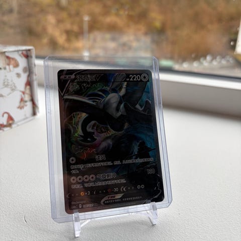 Begge kortene er i fullart-/foil-utførelse og leveres i sleve og topploader slik de vises på bildene. Egnet for samling eller bruk i Pokémon Trading Card Game-dekk.