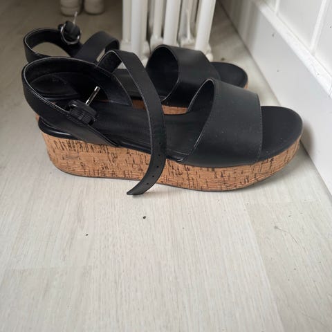 Pent brukt. Bittelitt slitasje på kilehælene (se bilder). Læret er helt fint.