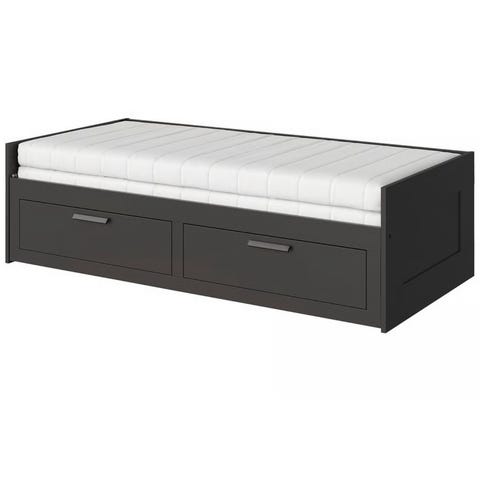 IKEA BRIMNES dagseng med to skuffer. Sengemål 80x200 cm. Under sengen er det to romslige oppbevaringsskuffer til sengetøy eller annet. Kan trekkes ut til dobbeltseng 160x200, eller brukes som enkeltseng.