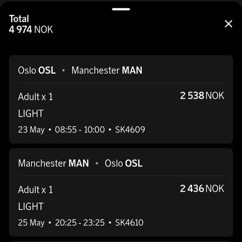 Flybilletter Gardermoen-London-Gardermoen 24-26.04