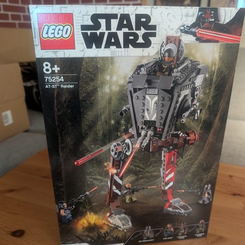 LEGO Star Wars AT-ST byggesett. Settet forestiller en AT-ST-walker fra Star Wars-universet og består av klosser for å bygge en detaljert modell med bevegelige deler. Passer for bygging og utstilling for Star Wars- og LEGO-interesserte. Inneholder LEGO-klosser og tilbehør som vist på esken.