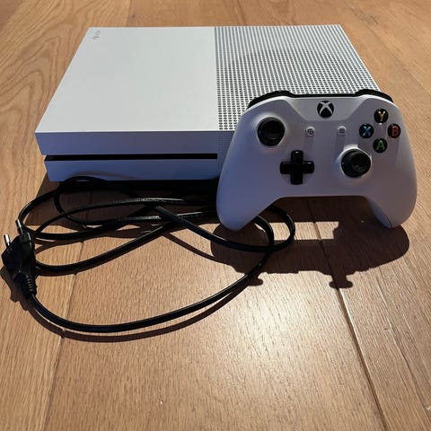 Selger en pent brukt Xbox One S med én kontroller på en 3m ledning. Et flott alternativ for å spille spill gratis eller bruke den som en smart-TV fordi du kan bruke den som en Apple TV, Chromecast eller laste ned alle programmer eller spill gratis 🤩