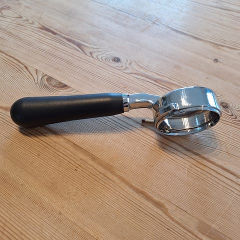 Normcore Bottomless Portafilter 58mm. Kompatibel med E61, Flair 58, ECM, Rocket, Sanremo, Synesso, Slayer, VBM, etc. Material: Stainless Steel + Anodized Aluminum (Handle) har en god vekt og følelse av bra kvalitet.