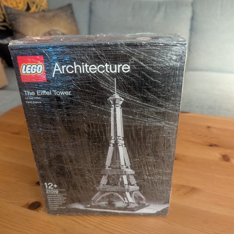 LEGO Architecture The Eiffel Tower byggesett. Modellen forestiller Eiffeltårnet i Paris, Frankrike, og er en del av LEGO Architecture-serien. Settet er anbefalt fra 12 år og oppover og har settnummer 21019. Byggesettet består av mindre LEGO-deler i hovedsakelig grå nyanser og gir en detaljert miniatyr av det kjente landemerket. Egnet for bygging, utstilling og som del av en samling innen arkitekturmodeller.