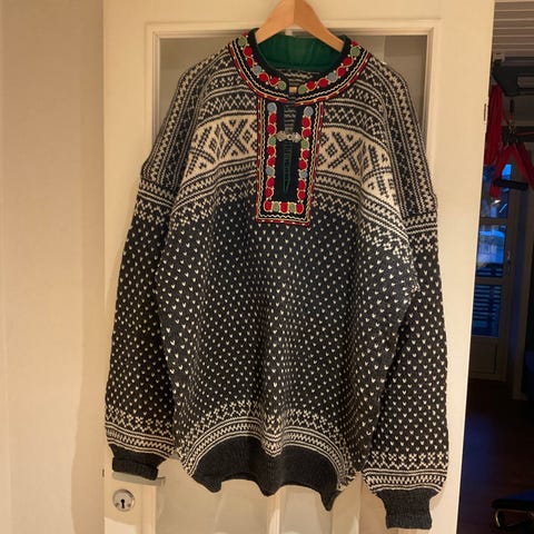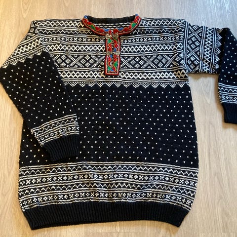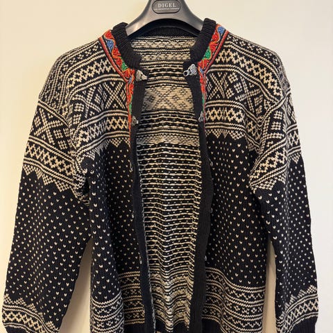 Fantastisk flott og kjempekul setedalsgenser som ble kjøpt for ca 1.5-2 år siden. Selger grunnet lite bruk i det siste. Str. L, trolig herregenser men den passet fint på meg og. 100% ull, strikket i Norge. Dessverre så brakk en av "knaggene", men vil tro at det kan lett fikses. Mener å huske at det var et lite hull et eller annet sted, men finner den ikke på genseren når jeg leter, så er usikker. Ellers veldig god, varmer godt og er kjempefin!