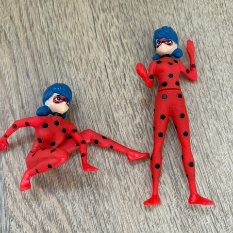 Datteren min selger 8 stk Miraculous Ladybug samlefigurer fra Kinder Egg. Her får du både Ladybug sjøl, Cat Noir, Rena Rouge, og Hawk Moth/Shadow Moth, samt Kwamiene Tikki, Plagg, Trixx og Nooroo. Komplett samling 🤩