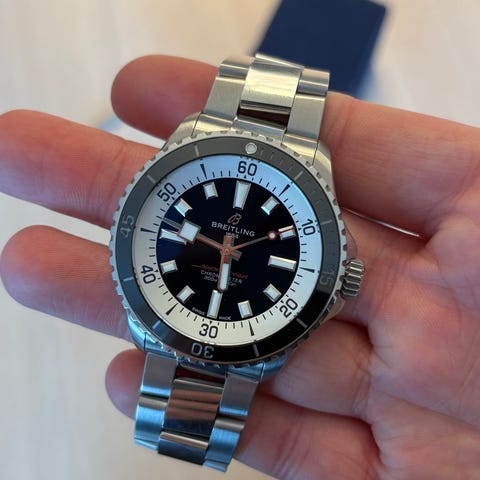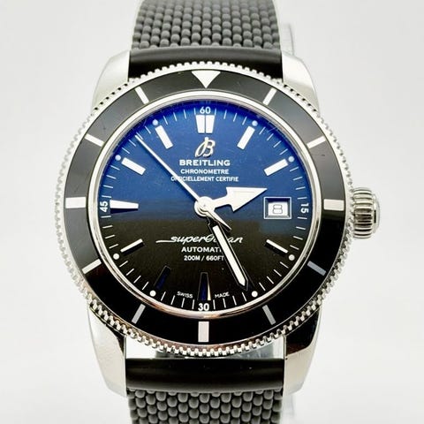 2024 Breitling SuperOcean A17367 med sort skive. Diameter 44mm uten krone.