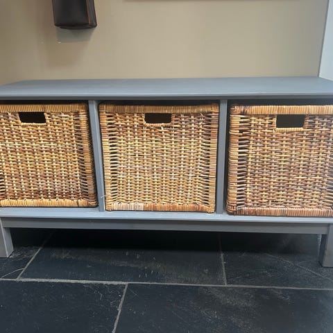 Selger brukte entremøbler. Benk til gang med oppbevaring. Mål.110x35x47cm. Nypris. 3500kr.