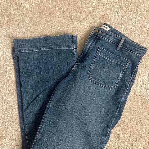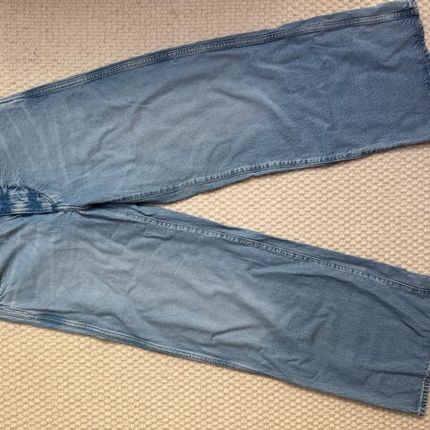 Wrangler World Wide jeans for dame i blå denim. Buksen har livvidde W28 x30 og tilsvarer størrelse S. Klassisk femlommersmodell med baklomme med Wrangler-logo og skinnpatch. Produsert i denimstoff, egnet til hverdagsbruk og fritid.Kjøpt februar 2026, kun prøvd på. Passet dessverre ikke meg på lengden.