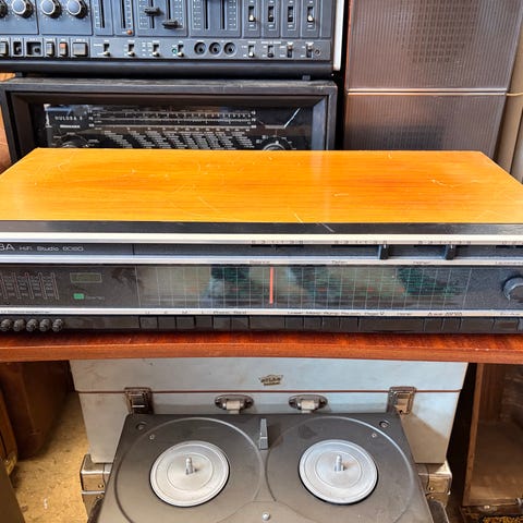 Selger en klassisk Nordmende Stereo 6005 ST – en flott vintage receiver med ekte retro-look i treverk.