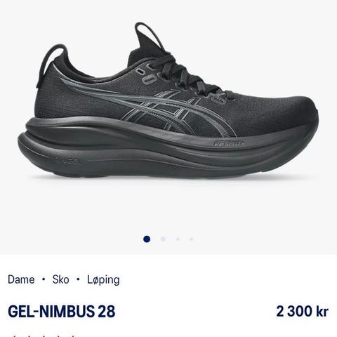 Asics Gel-Nimbus 27 løpesko i størrelse 46. Modellen er en nøytral løpesko til løping, med overdel i tekstil og syntetisk materiale og mellomsåle med demping. Fargen er hovedsakelig svart med lyse detaljer og lys mellomsåle. Egnet for løping på vei og lett underlag.Ferdig pruta🙂