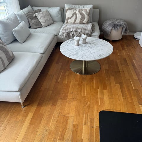 Modulene er ca. 4 år gamle og har vært lite brukt, stått i en lounge. De er i en fin hvit/grå farge. Det finnes noen små flekker, men disse er jeg sikker på at kan fjernes.