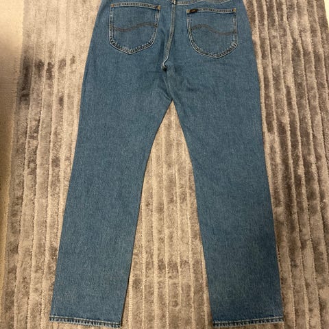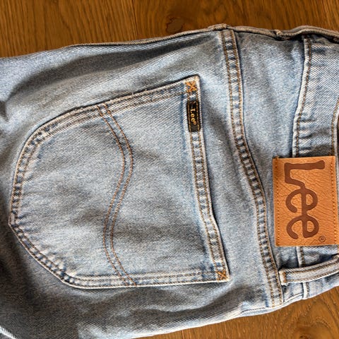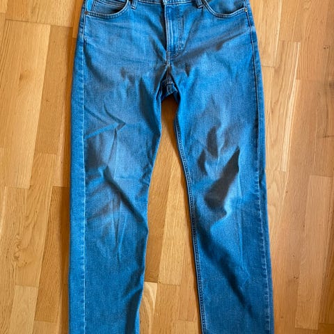 Lee West jeans for herre i blå denim. Buksen har livvidde W33 og lengde L32, tilsvarende herrestørrelse M. Klassisk 5-lommers modell med glidelås og knapp i front. Produsert i denimstoff, egnet til hverdagsbruk.
