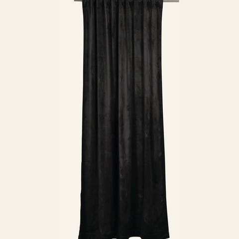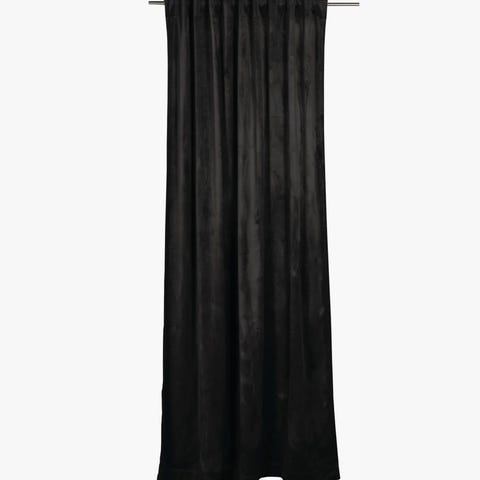Kid Mali velour gardin i svart. Gardinen har målene 135x220 cm og er laget i et mykt velourstoff. Den har multibånd øverst som gjør at den kan henges opp med både gardinkroker og stang. Egner seg til bruk i stue, soverom eller andre rom der man ønsker en mørk og lun tekstil foran vinduet. Selger to stk samlet