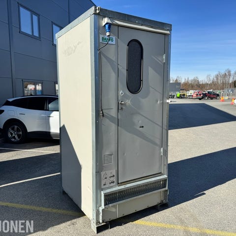 Praktisk og solid toalettbrakke fra Danfo (Bautas), godt egnet til byggeplass, arrangement eller midlertidige behov.