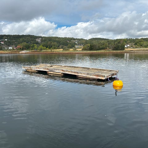 Flytebrygge av plastrør. 5 x 2,5 meter