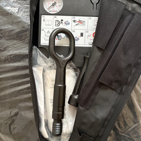 Har løse luftputer, kiler og annet dirkeutstyr.