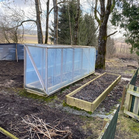 Legg merke til den gode bredden på drivhuset, hele 285 cm! På denne måten kan du dyrke på begge sider av midtgangen, og likevel ha god plass til å oppholde deg i midten, eller til og med ha en tredje planterad i midten.
