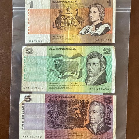 Samt en 5$ seddel fra Australia,følger Selges samlet for kr 600 + porto