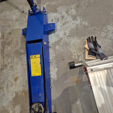 Solid høytløftende garasjejekk. Løfter ikke så mange tonn, men ypperlig til girkasser å sånn.