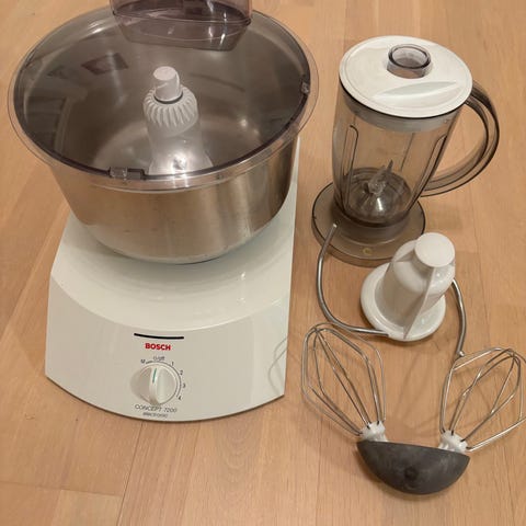 Ønsker å kjøpe foodprosessor til Bosch integrert kjøkkenmaskin type MEK 7000. Annet tilleggsutstyr kan også være av interesse, samt komplett kjøkkenmaskin.