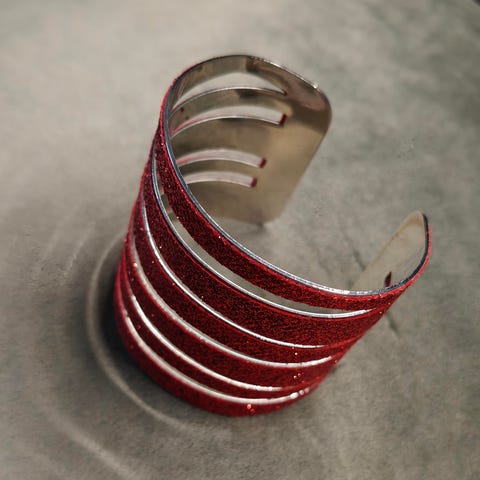 Bredt armbånd i brune og gyldne toner