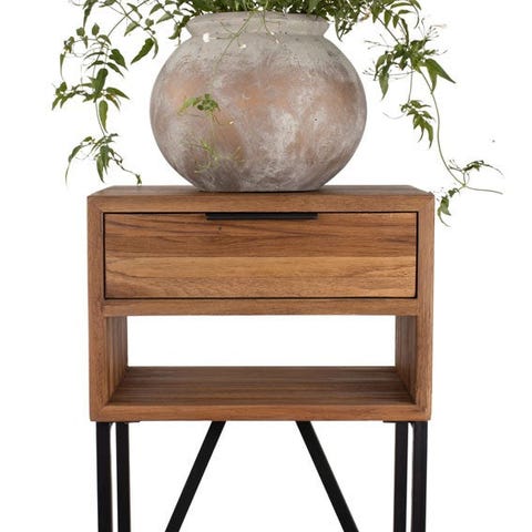 Nattbord Mørk Brun Tre Semsket Skinn. LAGERVARE! Fri frakt i HELE Norge!