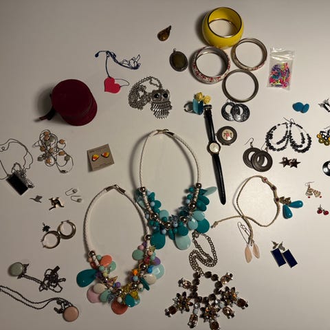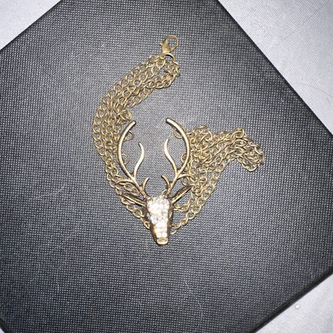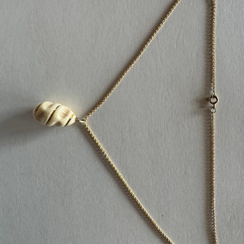 - Halskjedet har vinger laget av "cowbone" og selve halskjedet er forgylt med 18 karat gull.